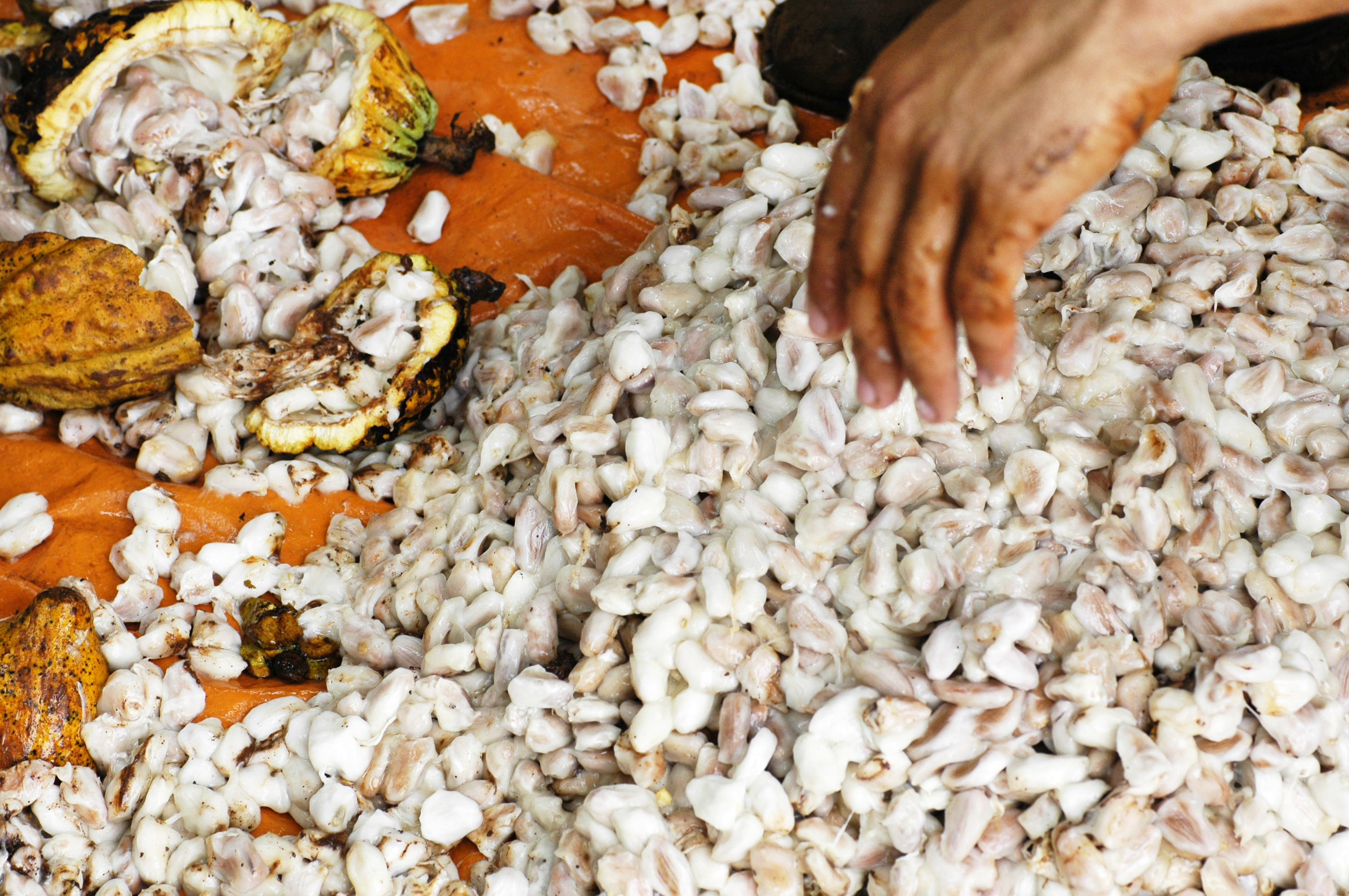 Kakaobohnen mit Pulpe